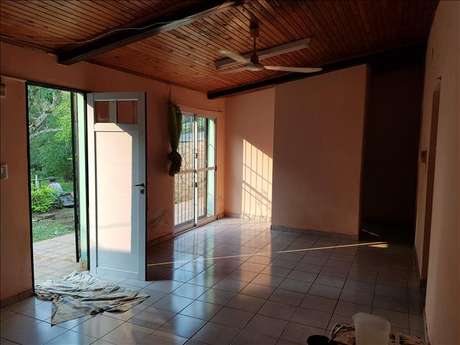 Casa de vivienda con ampliacion hacia atras, un lavadero cubierto, dos dormitorios, patios al frente y posterior, a mil metros de la ruta Nacional 12 y de la Av. Libertad, de esta ciudad de Jardin America, Mnes.