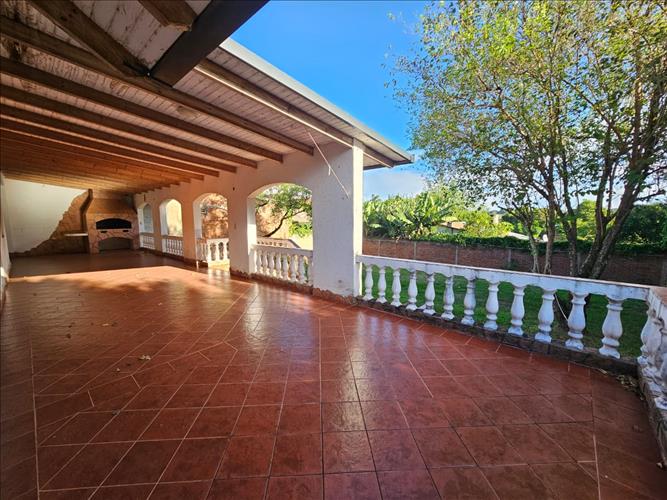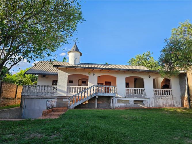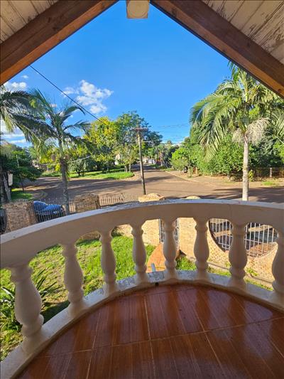 Ubicado a 2 cuadras de la Plaza colon, esquina, Amplio patio que rodea la propiedad, con cochera para 3 vehículos, galería al frente y atrás con parrilla, cocina con cocina anafe, alacena y bajo mesada, comedor-Living con muebles de madera, un baño de servicio y uno en suite en el dormitorio principal, cuenta con 3 dormitorios, en dos de ellos con aire acondicionado, un cobertizo en en piso superior con baño y balcón que se podría usar como un dormitorio mas.